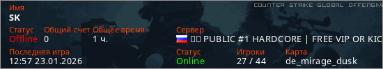 Играет на Counter Strike Global Offensive сервере. Страна: РоссияПервый раз замечен 15:09 23.11.2025