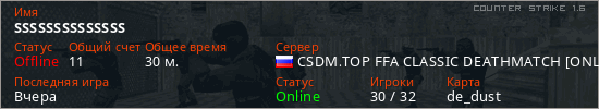 Последний раз был в сети Вчера Игрок с таким ником замечен на 5 серверах