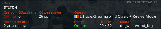 Играет на Counter Strike 1.6 сервере. Страна: РумынияПервый раз замечен 08:33 25.03.2026