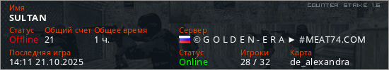 Играет на Counter Strike 1.6 сервере. Страна: РоссияПервый раз замечен 01:46 01.10.2023