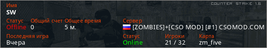 Последний раз был в сети Вчера Игрок с таким ником замечен на 18 серверах