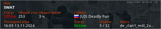 Последний раз был в сети 16:05 13.11.2024 Игрок с таким ником замечен на 38 серверах