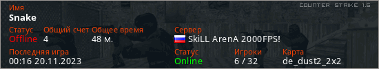 Играет на Counter Strike 1.6 сервере. Страна: РоссияПервый раз замечен 18:06 17.11.2022
