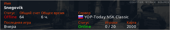 Последний раз был в сети Вчера Игрок с таким ником замечен на 15 серверах