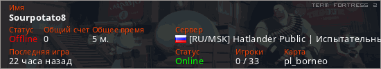 Играет на Team Fortress 2 сервере. Страна: РоссияПервый раз замечен 02:03 07.03.2026