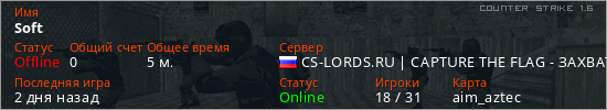 Последний раз был в сети 2 дня назад Игрок с таким ником замечен на 20 серверах