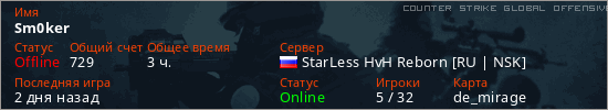 Играет на Counter Strike Global Offensive сервере. Страна: РоссияПервый раз замечен 11:37 20.11.2025