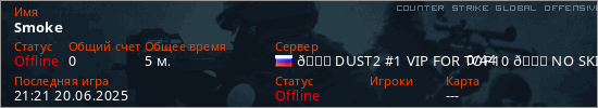 Играет на Counter Strike Global Offensive сервере. Страна: РоссияПервый раз замечен 20:59 20.06.2025