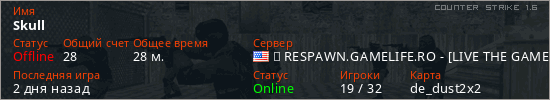 Последний раз был в сети 2 дня назад Игрок с таким ником замечен на 28 серверах