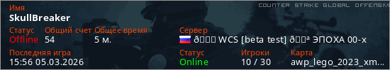 Играет на Counter Strike Global Offensive сервере. Страна: РоссияПервый раз замечен 15:48 05.03.2026