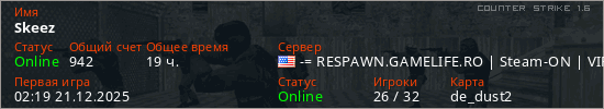 Играет на Counter Strike 1.6 сервере. Страна: СШАПервый раз замечен 02:19 21.12.2025