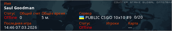 Играет на Counter Strike Global Offensive сервере. Страна: УкраинаПервый раз замечен 14:40 07.03.2026