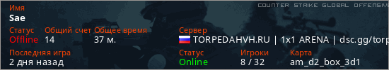 Играет на Counter Strike Global Offensive сервере. Страна: РоссияПервый раз замечен 20:54 31.03.2026