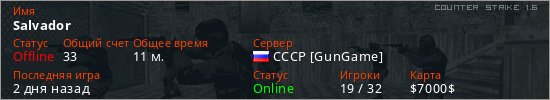 Последний раз был в сети 2 дня назад Игрок с таким ником замечен на 15 серверах