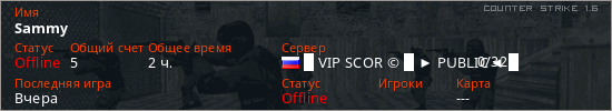 Играет на Counter Strike 1.6 сервере. Страна: РоссияПервый раз замечен 16:34 07.02.2026