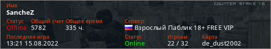 Последний раз был в сети 13:21 15.08.2022 Игрок с таким ником замечен на 10 серверах