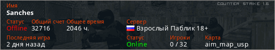 Играет на Counter Strike 1.6 сервере. Страна: РоссияПервый раз замечен 10:51 23.10.2021