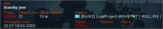 Играет на Counter Strike Global Offensive сервере. Страна: КазахстанПервый раз замечен 19:20 18.02.2026