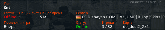 Последний раз был в сети Вчера Игрок с таким ником замечен на 26 серверах