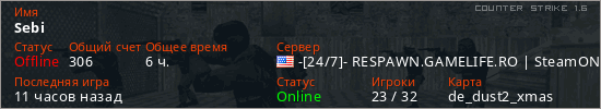 Играет на Counter Strike 1.6 сервере. Страна: СШАПервый раз замечен 14:09 11.04.2025