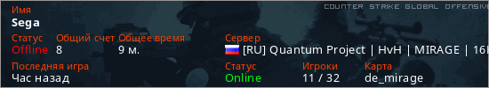 Играет на Counter Strike Global Offensive сервере. Страна: РоссияПервый раз замечен 05:00 10.04.2026