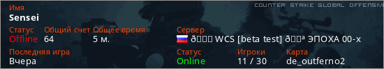 Играет на Counter Strike Global Offensive сервере. Страна: РоссияПервый раз замечен 16:21 07.03.2026