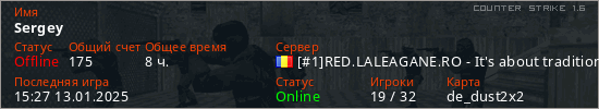 Играет на Counter Strike 1.6 сервере. Страна: РумынияПервый раз замечен 10:48 12.09.2023