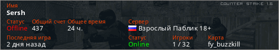 Играет на Counter Strike 1.6 сервере. Страна: РоссияПервый раз замечен 11:46 11.08.2020
