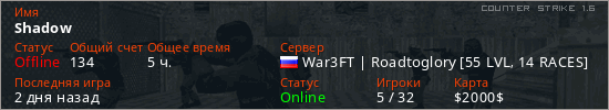 Играет на Counter Strike 1.6 сервере. Страна: РоссияПервый раз замечен 10:30 09.05.2021
