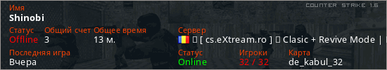 Играет на Counter Strike 1.6 сервере. Страна: РумынияПервый раз замечен 17:14 17.12.2024