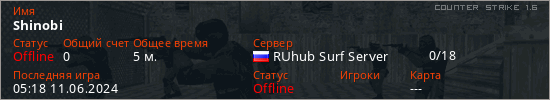 Играет на Counter Strike 1.6 сервере. Страна: РоссияПервый раз замечен 05:14 11.06.2024