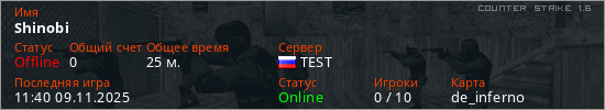 Последний раз был в сети 11:40 09.11.2025 Игрок с таким ником замечен на 16 серверах