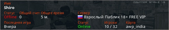 Последний раз был в сети Вчера Игрок с таким ником замечен на 21 сервере