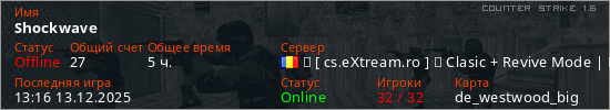 Играет на Counter Strike 1.6 сервере. Страна: РумынияПервый раз замечен 07:47 15.03.2025