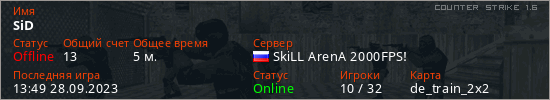 Последний раз был в сети 13:49 28.09.2023 Игрок с таким ником замечен на 16 серверах