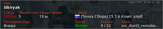 Последний раз был в сети Вчера Игрок с таким ником замечен на 6 серверах