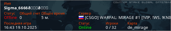 Играет на Counter Strike Global Offensive сервере. Страна: РоссияПервый раз замечен 16:35 19.10.2025