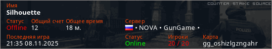 Играет на Counter Strike Source сервере. Страна: РоссияПервый раз замечен 16:22 06.11.2025