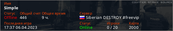 Играет на Counter Strike Source сервере. Страна: РоссияПервый раз замечен 06:54 03.02.2023