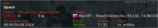 Играет на Counter Strike 1.6 сервере. Страна: РоссияПервый раз замечен 07:44 26.07.2024