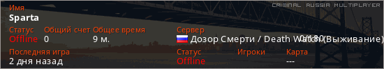 Последний раз был в сети 2 дня назад Игрок с таким ником замечен на 30 серверах