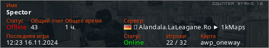 Играет на Counter Strike 1.6 сервере. Страна: ГерманияПервый раз замечен 05:11 12.11.2024