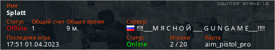 Играет на Counter Strike 1.6 сервере. Страна: РоссияПервый раз замечен 20:06 28.03.2023