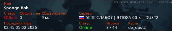 Играет на Counter Strike Global Offensive сервере. Страна: РоссияПервый раз замечен 03:25 26.01.2026