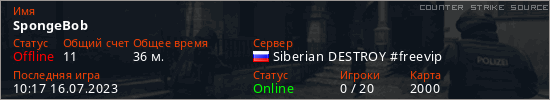Играет на Counter Strike Source сервере. Страна: РоссияПервый раз замечен 10:15 16.07.2023