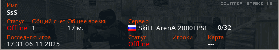 Последний раз был в сети 17:31 06.11.2025 Игрок с таким ником замечен на 15 серверах