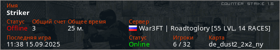 Последний раз был в сети 11:38 15.09.2025 Игрок с таким ником замечен на 35 серверах