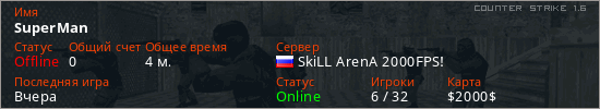 Последний раз был в сети Вчера Игрок с таким ником замечен на 12 серверах