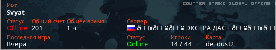 Играет на Counter Strike Global Offensive сервере. Страна: РоссияПервый раз замечен 23:07 13.03.2026
