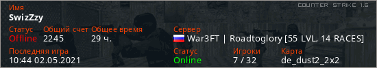 Последний раз был в сети 10:44 02.05.2021 Игрок с таким ником замечен на 2 серверах